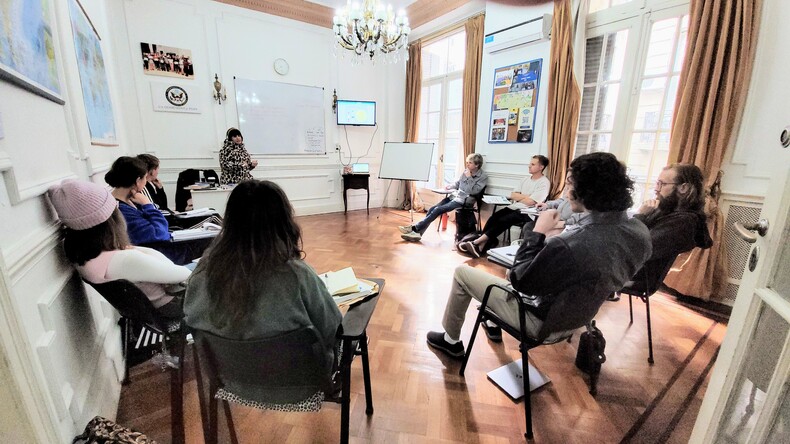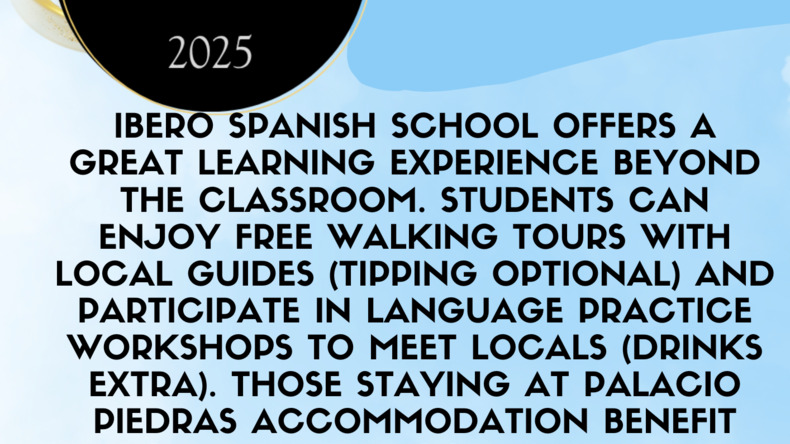 - في Ibero Spanish School، نؤمن بأن التعلم يتجاوز حدود الفصول الدراسية. يمكنكم استكشاف تاريخ المدينة العريق وثقافتها من خلال جولاتنا المجانية سيرًا على الأقدام، بقيادة مرشدين أرجنتينيين محليين شغوفين. ورغم أن الجولات مجانية، إلا أن لديكم فرصة ترك إكرامية تعبيرًا عن تقديركم. كما نربط طلابنا بورش عمل لغوية تنظمها شركات أخرى في جميع أنحاء بوينس آيرس. توفر هذه الفعاليات بيئة ممتعة لطلابنا الدوليين للقاء السكان المحليين، بتكلفة رمزية فقط عند شراء المشروبات الكحولية أو غير الكحولية. علاوة على ذلك، يندمج الطلاب المقيمون في سكننا، بالاسيو بيدراس، على الفور في مجتمع مترابط، مما يسهل عليهم تكوين صداقات، حيث يتم التخطيط باستمرار لأنشطة تلقائية داخل المجموعة.