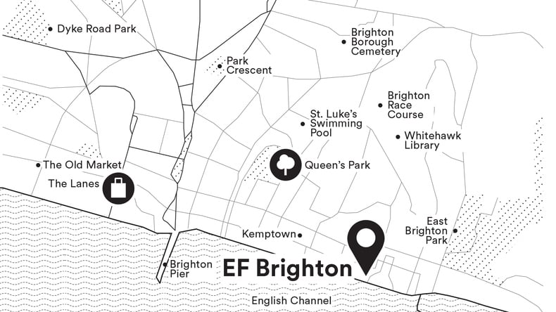 Lokalitet: EF International Language Center Brighton ligger i den pulserende kystby Brighton i det sydlige England. Brighton, der kaldes "London ved havet", har meget at tilbyde studerende i alle aldre. EF Brighton har en god beliggenhed for at hjælpe med alle elevernes behov. Skolen har til huse i en rummelig bygning med udsigt over den engelske kanal og ligger kun en kort gåtur fra stranden og den berygtede Brighton Pier. Bydelen "The Lanes" ligger ikke langt fra skolen og byder på en god blanding af shopping på High Street og små butikker og smalle gyder i kvarteret. Omkring skolen er der forskellige barer, restauranter, spisesteder, musiksteder og supermarkeder, hvilket sikrer, at eleverne har alt, hvad de har brug for for at få en fremragende tid i byen, samtidig med at de når deres sproglige mål. Med regelmæssige busser til London hvert 15. minut har eleverne på EF Brighton en fantastisk adgang til skolen for alle ankomster, afgange og dagsture.