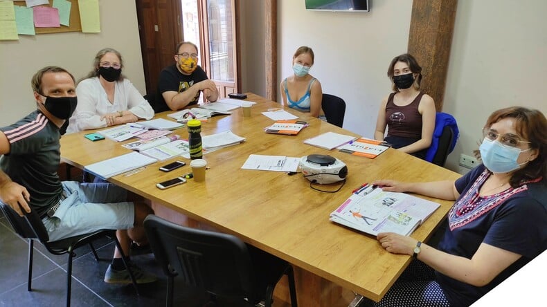4 timer dagligt med grammatik og praktisk konversation (mundtlig og skriftlig) og 1 time dagligt med konversation i små grupper (op til 10 personer) og tilpasset hvert niveau. Ud over CI-kurset har du en daglig konversationstime i små grupper.