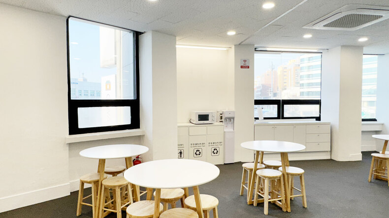 O edifício abriga um Starbucks no térreo e no segundo andar, com o vibrante AK Plaza logo ao lado. Um grande destaque desta localização é sua proximidade imbatível com o Yeontral Park, a poucos passos do outro lado da rua. Este parque panorâmico oferece um retiro tranquilo, perfeito para passeios de lazer e exploração de cafés e opções de restaurantes imperdíveis.
