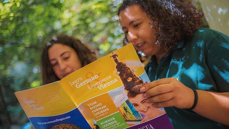 A nossa moderna escola de línguas está situada na bela Viena. Temos mais de 30 anos de experiência como uma das principais escolas de alemão como língua estrangeira. O nosso vasto programa de cursos - desde alemão para adultos a férias de alemão para crianças e adolescentes - é reconhecido mundialmente e recomendado por consultores educacionais internacionais.