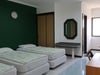 Slaapzaal bestaat uit: kledingkast, bed, badkamer, koelkast, airconditioning, douche, bureau.